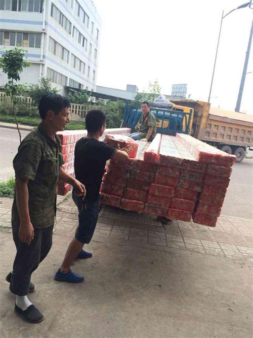 烈日下,公司同事互相配合,積極包貨、上貨。