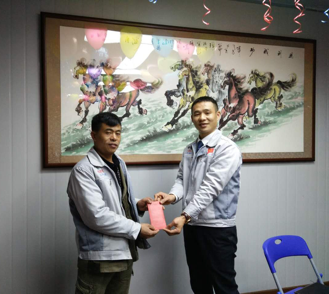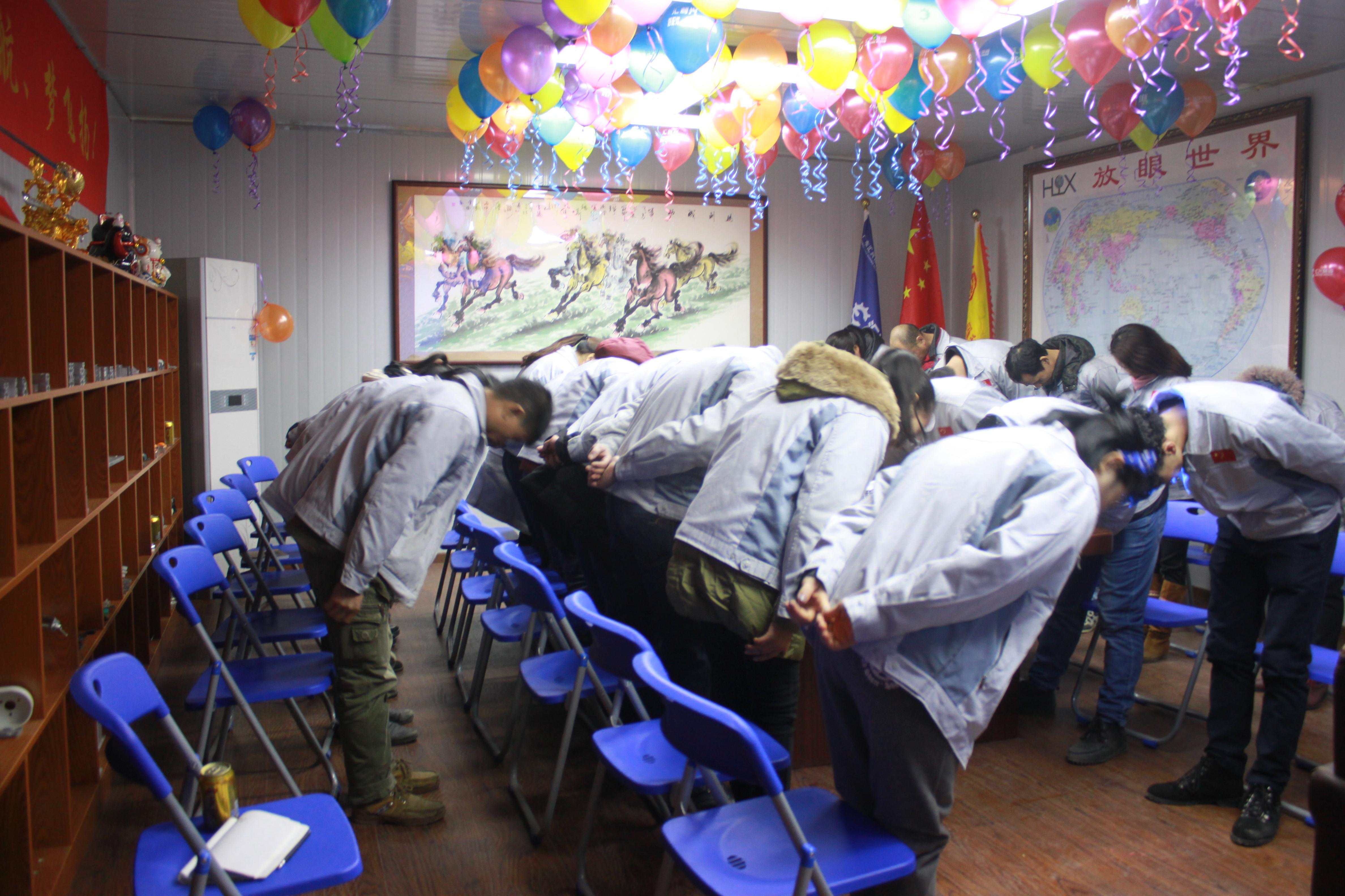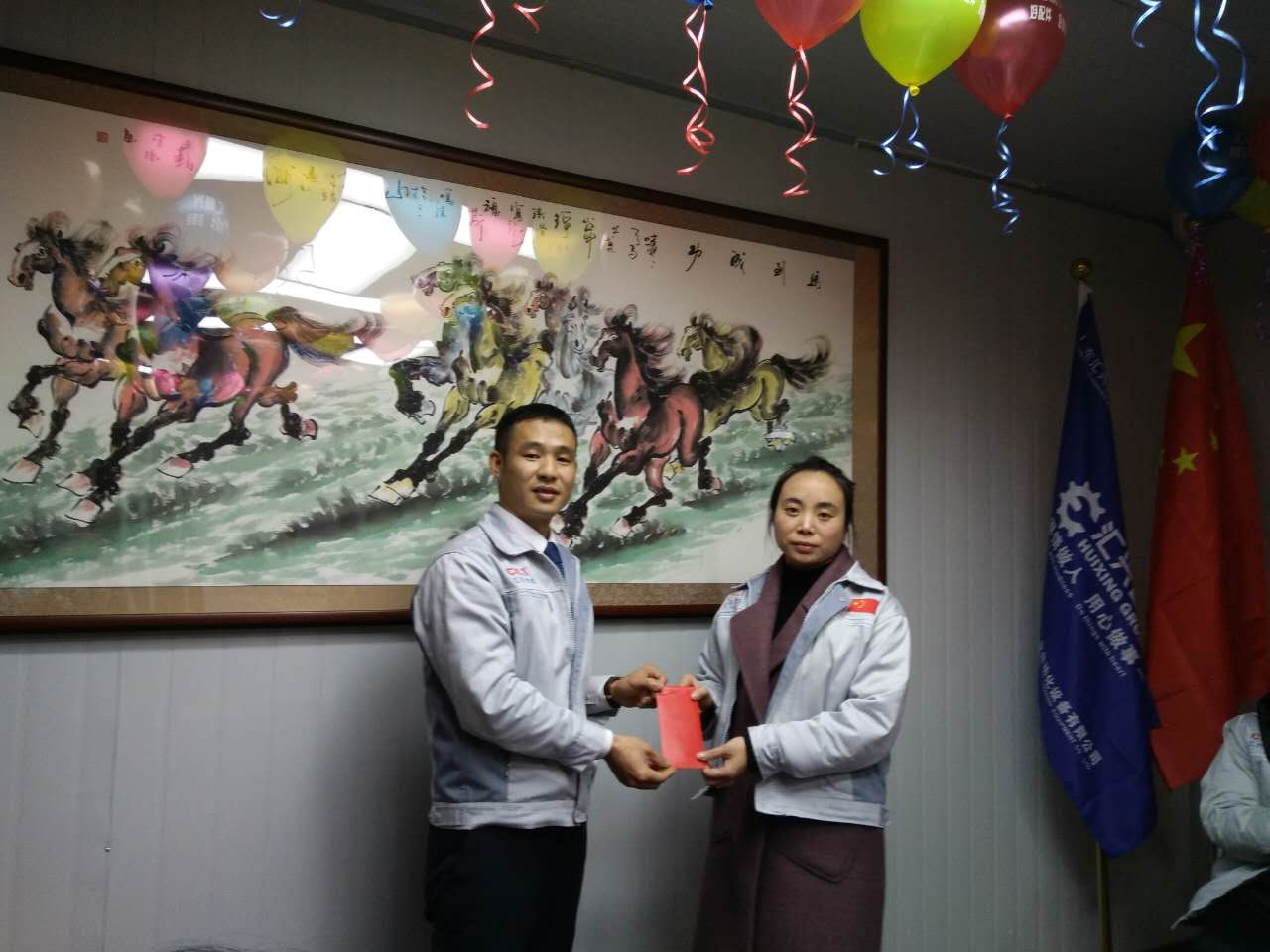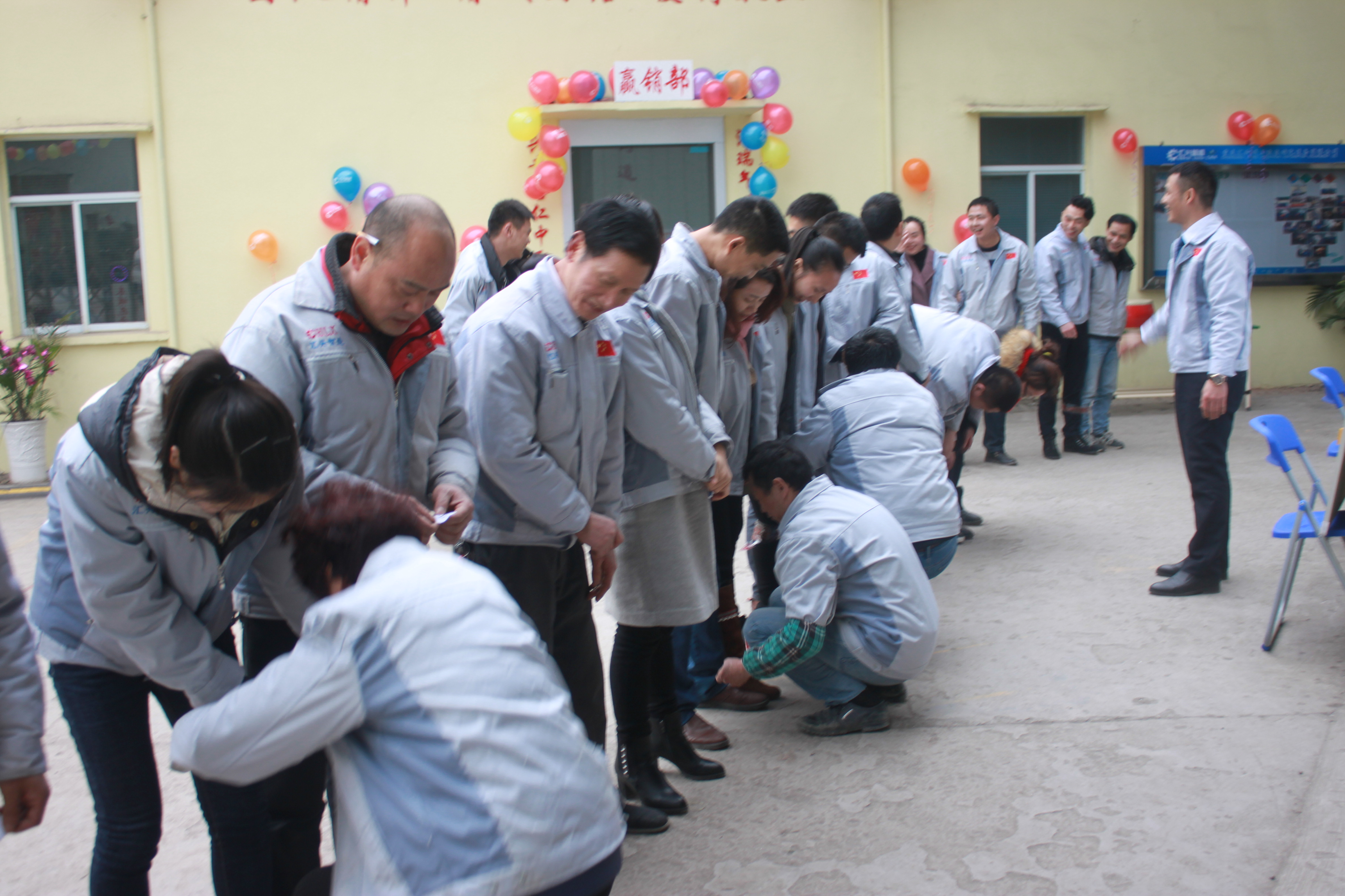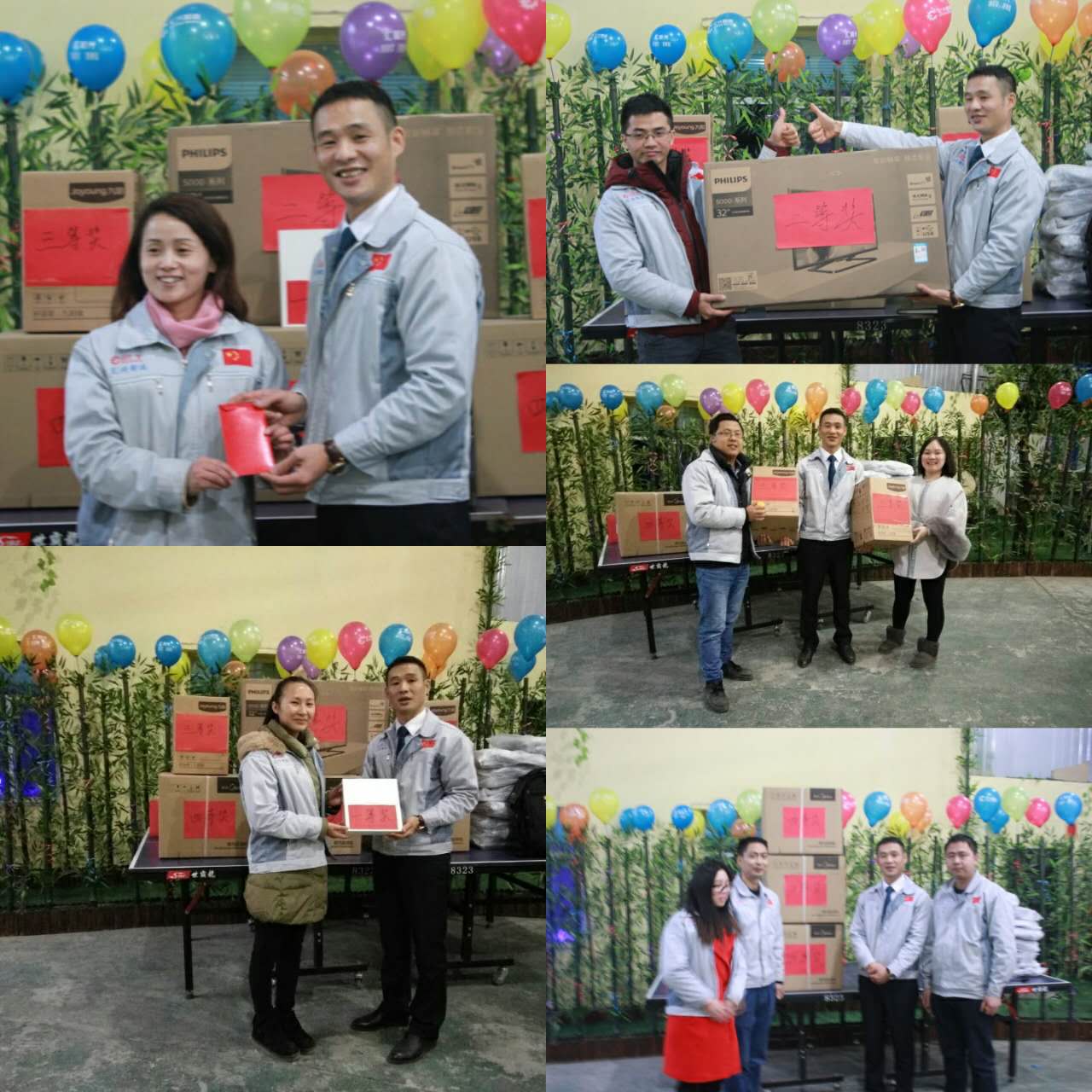 (眾人一條心)游戲準(zhǔn)備中,裁判們?yōu)檫x手們系上同心交織的紐帶 匯利興女戰(zhàn)士敲擊士鼓,士氣比武器更重要 會(huì)議召開(kāi)前對(duì)企業(yè)三道(人道、孝道、商道)行三鞠躬 年度盛會(huì)由主持人劉園園上臺(tái)正式拉開(kāi)序幕,會(huì)議前我們一起回眸2016年工作縮影,回眸了與匯利興大家庭的交集。 會(huì)議上,胡總經(jīng)理表示:2017年新起點(diǎn)的一系列規(guī)章制度、員工薪酬福利制度、員工職位考核制度,回首了2016年匯利興的成長(zhǎng)與發(fā)展,3月14日公司搬址、傳祺戰(zhàn)車(chē)加入、倉(cāng)儲(chǔ)及系統(tǒng)完善,2017年展望與目標(biāo)。同時(shí)表示感謝大家在2016年中的包容與支持同時(shí)也相信大家在2017年能一起攜手完成我們的目標(biāo)及挑戰(zhàn)。此后各部門(mén)代表發(fā)言總結(jié)2016年展望及2017年每月業(yè)績(jī)目標(biāo)。 匯利興全體戰(zhàn)士一起回眸2016年與匯利興大家庭的交集 隨著年會(huì)的氣氛越來(lái)越濃厚,接下來(lái)由胡總經(jīng)理一一頒發(fā)獎(jiǎng)金及揭曉年會(huì)大獎(jiǎng)獲者。獎(jiǎng)金頒發(fā):最佳付出獎(jiǎng)、最佳責(zé)任獎(jiǎng)分別是劉元平與石樂(lè)歡戰(zhàn)士,在此感謝兩位家人的奉獻(xiàn)與付出。 在你們愛(ài)家的同時(shí)匯利興這個(gè)家會(huì)更加愛(ài)你們。 胡偉路總經(jīng)理與“最佳責(zé)任獎(jiǎng)”榮獲者石樂(lè)歡同框合影 胡偉路總經(jīng)理與“最佳付出獎(jiǎng)”榮獲者劉元平同框合影 年會(huì)大獎(jiǎng)揭曉,胡總經(jīng)理一一揭曉大獎(jiǎng)獲者,此次大獎(jiǎng)由26個(gè)英文字母之一相繼而出,獲獎(jiǎng)組圖以下: 胡偉路總經(jīng)理與年度盛會(huì)大獎(jiǎng)獲得者合影圖(特等獎(jiǎng)、一等獎(jiǎng)、二等獎(jiǎng)、三等獎(jiǎng)、四等獎(jiǎng)) 年度盛典活動(dòng)逐漸接近尾聲,活動(dòng)以“畫(huà)鼻子”游戲拉開(kāi)帷幕。即使看不見(jiàn)光明,只要心中有信仰、信念那也將是一個(gè)通往前方的航燈。 匯利興大家庭年會(huì)團(tuán)圓飯圖貌 隨著年飯的結(jié)束,2016年盛會(huì)圓滿結(jié)束。回首過(guò)去,放眼未來(lái),2016年已逝去的,我們不再留戀,2017年的到來(lái)我們?nèi)ビ?;因?yàn)樵谛碌囊荒暧形覀兊哪繕?biāo)及夢(mèng)想我們要一同去創(chuàng)造去實(shí)現(xiàn)它,實(shí)現(xiàn)中國(guó)智能裝備全產(chǎn)業(yè)鏈集成智造標(biāo)桿,繼續(xù)引領(lǐng)行業(yè)的發(fā)展。同時(shí)在此感恩所有對(duì)匯利興關(guān)懷及支持過(guò)的您們,正是因?yàn)橛辛四鷤兊闹С植诺靡宰寘R利興茁壯成長(zhǎng),才能讓匯利興在行業(yè)道路上越走越穩(wěn)。感恩您們......