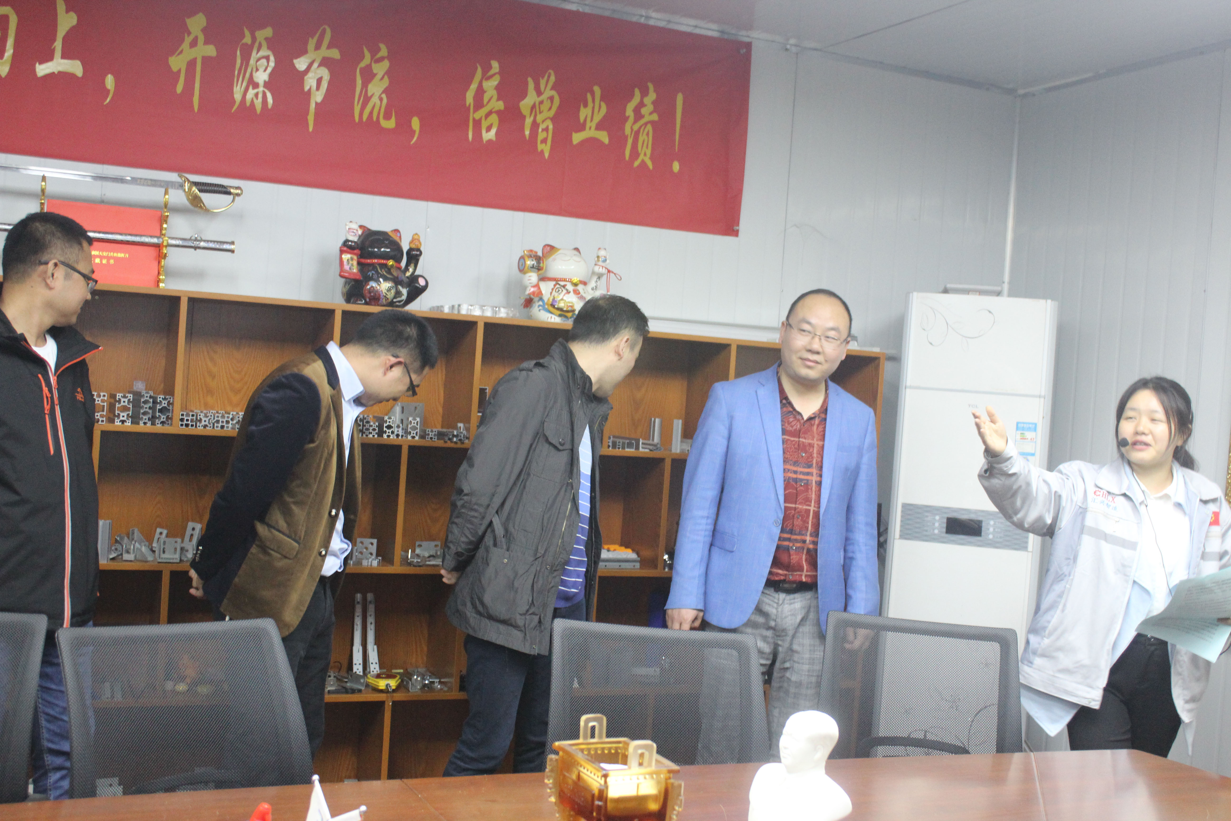 企業文化大使小敏正在為客人介紹匯利興文化 在此,客服部小敏(企業文化大使)為來訪的客人們相繼介紹了我司的企業文化,并帶領客人參觀了匯利興廠容廠貌,詳細介紹了匯利興的發展史及企業文化(三道:人道、孝道、商道,企業精神:用情做人、用心做事),并帶領客人初步了解了工業鋁型材、滾筒、精益管、工裝板、精密工業配件等材料的認識,同時介紹了我司企業愿景:誓力打造中國自動化配件第一品牌,更好的滿足客戶個性化定制和柔性化生產;此后對于匯利興濃厚的企業文化及厚重的企業實力,一致獲得了客人們高度的贊許及認可并表示與匯利興合作十分放心。 客人與匯利興家人合影圖 客人為“喜上眉梢、鴻運當頭”錦上添花圖景 “相識滿天下,知心在匯興”,來訪客人受邀相繼在“喜上眉梢 鴻運當頭”留下深刻的印記,為此錦上添花。“欲常常而見之,故源源而來”,相聚匯利興,故交友于匯利興同友人一起共發展共進步。