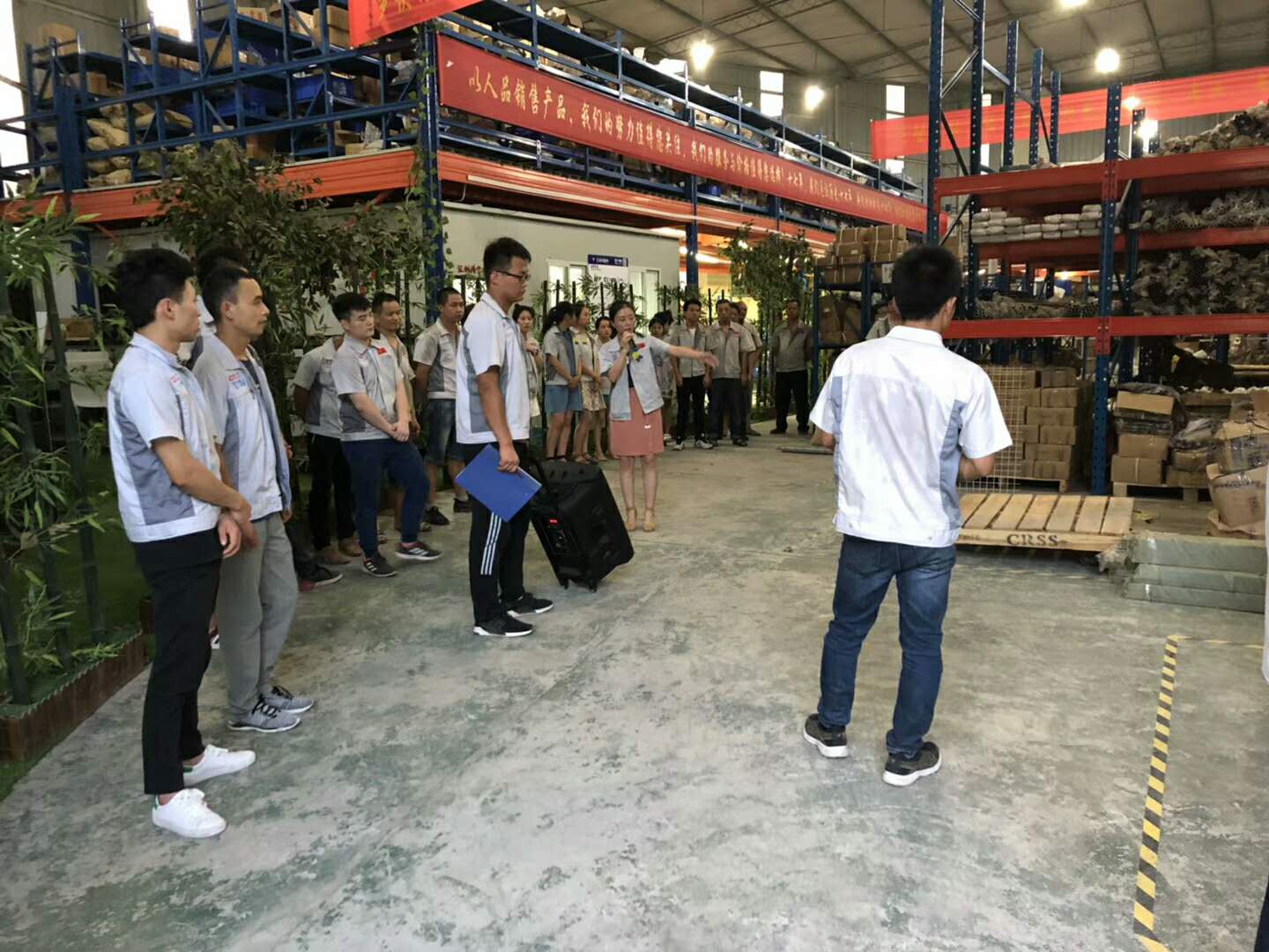 隨著家人們熱情高漲,會議開啟第二議程。全體人員隨主持人巡視倉儲A區長材區與倉儲B區配件區庫存及加工區面貌,集思廣益、廣納諫言并相互監督面貌的保持。