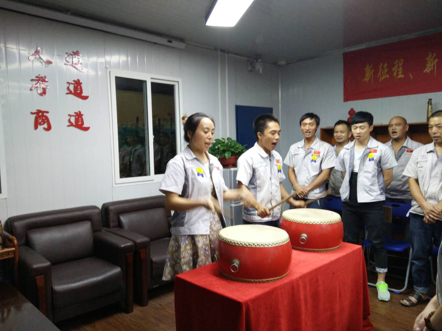 劍風所指,所向披靡。會議開始前,主持人陳香草帶領大家移步匯興文化廠地,整肅衣冠 ,對匯興人倍加推崇的“三道文化”(孝道、商道、人道)鄭重地鞠躬,莊嚴宣誓企業精神“用情做人、用心做事”,團隊精神“忠誠團結、勤奮進取”,隨后由匯興兩位女精英擊士氣鼓,凝人心、鼓干勁;緊接著胡偉路總經理授予采購部凝聚亮劍精神的一把寶刀,亮出氣勢、匯聚力量,砍前行荊棘、勇踏匯興征途。