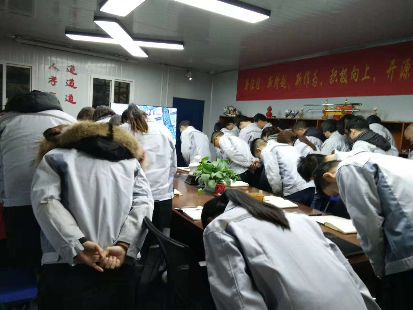 2018年12月11日匯利興(重慶)公司全體員工在公司召開11月份月度會(huì)議,會(huì)議由行政部主持,整個(gè)會(huì)議歷時(shí)2個(gè)小時(shí)。 會(huì)議共計(jì)三項(xiàng)議程。會(huì)議前,全體員工整肅衣冠 ,對(duì)匯興人倍加推崇的“三道文化”(孝道、商道、人道)鄭重地鞠躬,莊嚴(yán)宣誓企業(yè)精神“用情做人、用心做事”,團(tuán)隊(duì)精神“忠誠(chéng)團(tuán)結(jié)、勤奮進(jìn)取”,隨后大家一起唱響我們匯利興的戰(zhàn)歌(怒放的業(yè)績(jī)),現(xiàn)場(chǎng)氣氛熱烈、振奮人心。
