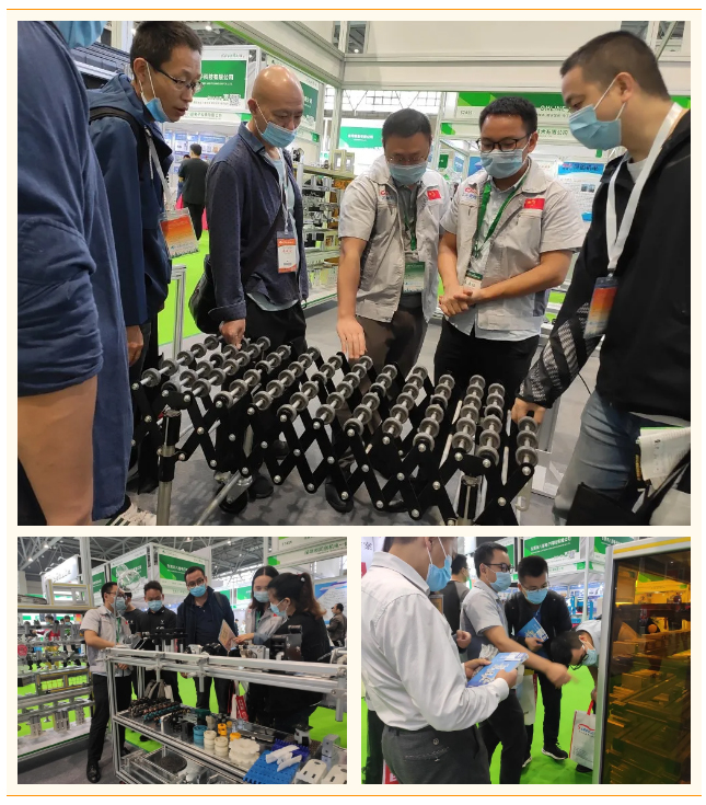 倍速線、摩擦線、滾筒線、柔性線等在展會現(xiàn)場大放異彩,跟隨著電流的植入、左右來回運轉(zhuǎn),展示智能輸送產(chǎn)線的物品輸送特點,其次通過零部件的合理裝配,達到高效、安全、低成本的應(yīng)用效果,實現(xiàn)工廠智能化、數(shù)字化及網(wǎng)絡(luò)化升級,成為展會現(xiàn)場一大亮點,觀眾們紛至沓來,紛紛感嘆智能自動化輸送零部件的強大,夸贊實用性高,并現(xiàn)場達成合作意識!