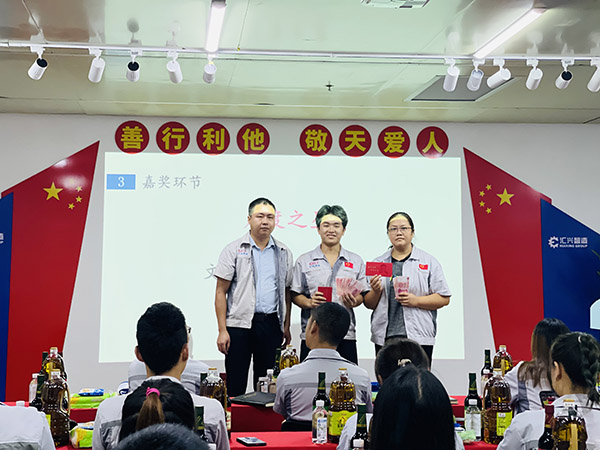 2021年9月17日18點45分,匯利興西南工廠全體員工在匯利興學校召開8月月度會議,由行政部主持。 會議前,由二位核心高管擊響士氣鼓,鼓舞士氣,鼓舞著戰(zhàn)友們奮勇前進,并以這種以評促進、你追我趕的“激勵文化”,潛移默化融于員工的日常工作中?,F(xiàn)場鼓聲震天,士氣如虹。 會議第一項,企業(yè)文化展示。全體員工整肅衣冠,對倍加推崇的孝道、商道、人道鄭重鞠躬,莊嚴宣誓企業(yè)愿景:“成為行業(yè)優(yōu)秀的智能自動化產(chǎn)業(yè)鏈集成服務商”,企業(yè)使命:做受尊敬的好人,造受尊敬的產(chǎn)品,辦受尊敬的企業(yè),建受尊敬的平臺,企業(yè)精神“用情做人、用心做事”,團隊精神“忠誠團結、勤奮進取”,工匠精神:創(chuàng)于手、精于工、智于器、匠于心、品于行等。