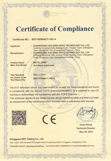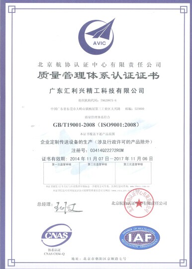 4、匯利興集團公司于2014年11月通過ISO9001:2008質量管理體系認證;