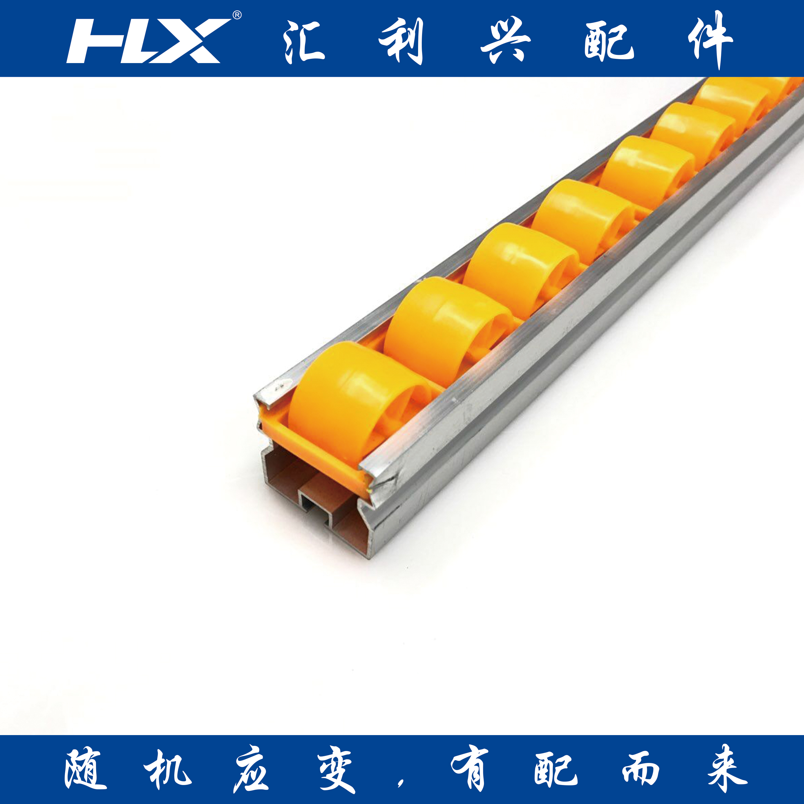 流利條系列:HLX-4A-2鋁合金流利條匯利興產品這流水線配件流利條系列,流利條主要用于輸送、倉儲系統配套產品,可用作滑軌、護欄、導向裝置、滾動性能好、成本低。滾輪采用高品質的熱塑性塑料制成,具有摩擦系數小、抗沖擊、壽命長、耐酸堿性、耐潮溫等優點。當貨物重量超過額定的負荷時,可在一個通道安裝多根流利條。安裝傾斜度取決于重量以及流利架的深度,一般3O~6O(5%~9%)。通常在深度方向上每隔600mm~800mm安裝一根支撐梁以增強流利條的剛度。滾輪顏色可選:黃色,藍色,白色,黑色等其他顏色。輪距常用為:35mm,45mm 并可以根據實際使用情況定尺生產。我司專業生產鋁全金流利條,載重流利條,板金流利條,鋁全金流利條接頭,板金流利條接頭等流水線配件。 |